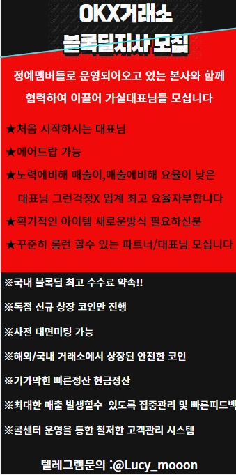 갤러리 본문 영역 ★★최고의 재단★★ 블록딜 본사 직속 / 파트너 / 영업진 모집합니다★★앱에서 작성 ㅇㅇ 25-01-22 16:10 조회 356 댓글 0 다음글 영업 잘 하실 수 있게 시스템은 최상으로 갖춰져 있습니다.업종 바꾸신 대표님들도 쉽게 영업하실 수 있게 영업 포인트 다 알려드리니 걱정마시고 연락주세요.최고의 조건과 서비스로 저희와 함께 윈윈할수있는 대표님 연락주세요텔레그램문의 :@Lucy_mooon